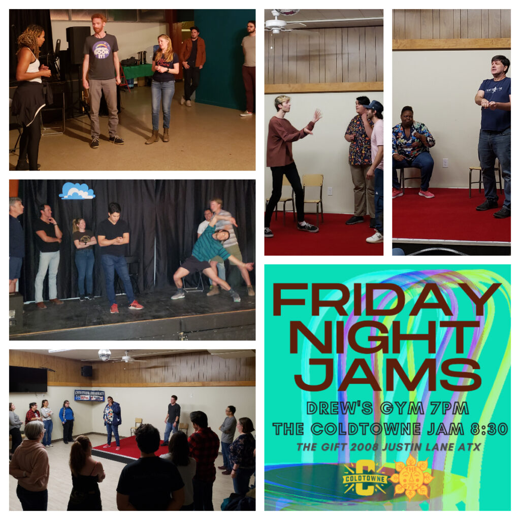 FREE EVERY FRIDAY AT 7PM at Drew’s Gym and the ColdTowne Improv Jam everyone is welcome to come play in improv scenes and work out their improv skills! Whether you are a student in classes who wants to reinforce what you’ve learned, a graduate looking for new people to perform improv with, or anyone curious to try out whether improv is for them, you can come play with us in a fun and safe environment!